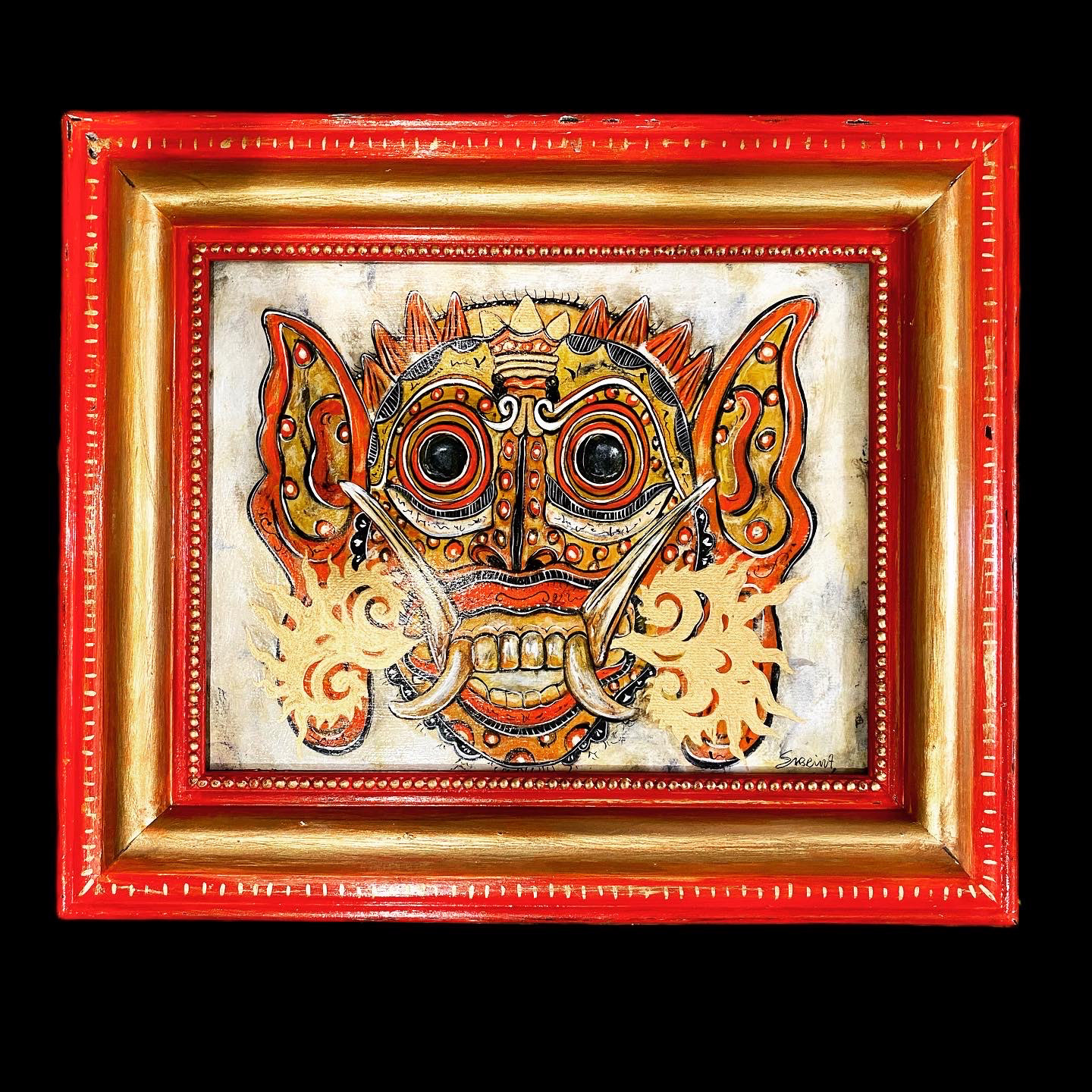 11"x14" w/painted frame; these were inspired by an incredible book called "Balinese Masks" that I received as a gift. The masks, performances and lore behind them are well worth looking up!