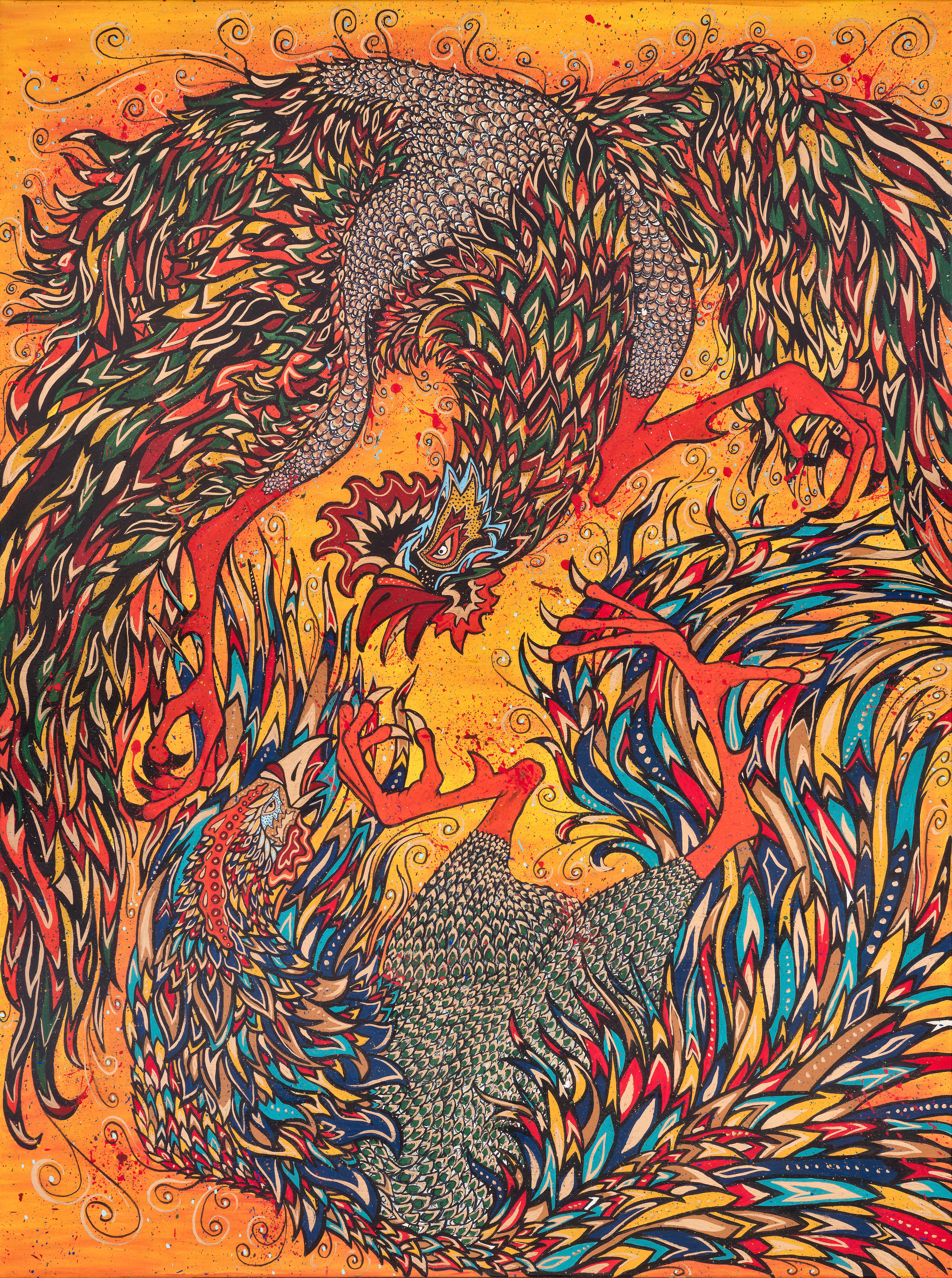 36"x48"; Acrylic, gold leaf on canvas. Any size gallery-profile signed reproductions available with handpainted gold accents. Please contact for pricing.